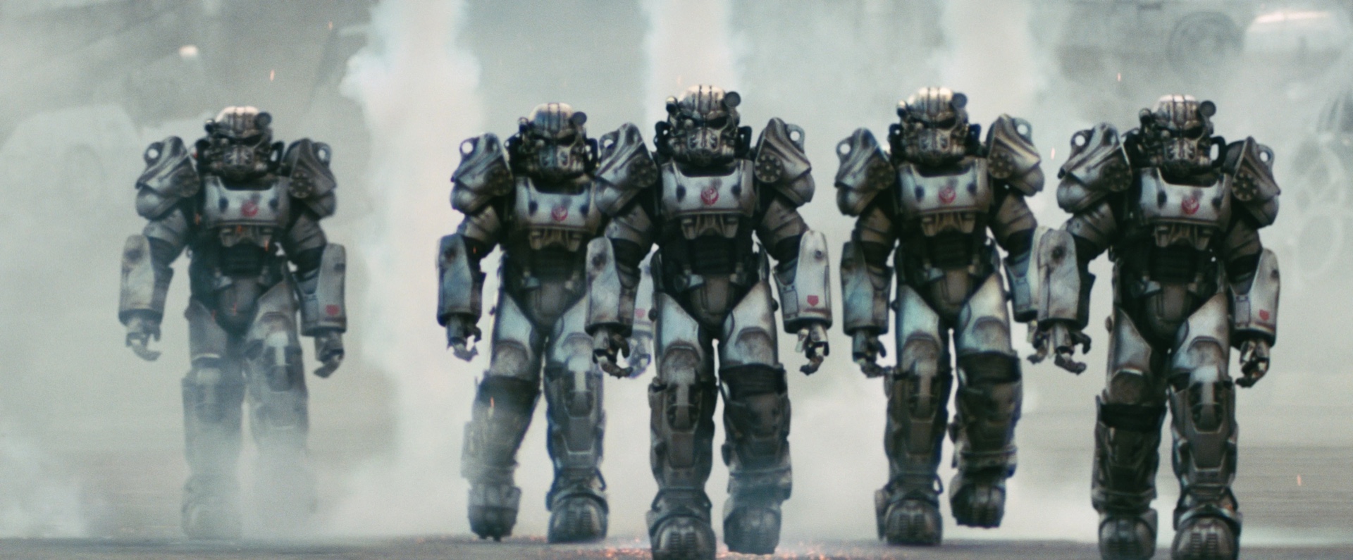 In season 1, the arrival of an airship carrying knights appeared straightforward – the San Fernando leadership and initiates clearly had never seen an airship or that many fully equipped knights in power armor before. The scene was shot to create the impression that everything came from the Commonwealth Brotherhood on the East Coast. Knight Titus, one of the arrivals, spoke with an East Coast accent (specifically New York, though many mistakenly call it Boston). The airship bore the name "Prydwen" – the flagship of the Commonwealth Brotherhood from Fallout 4.