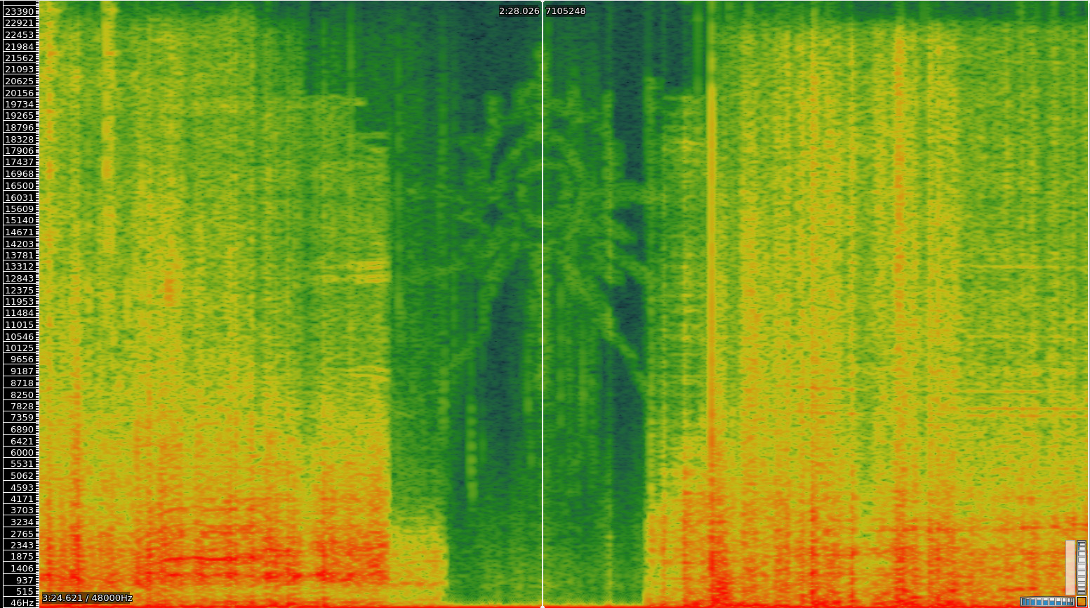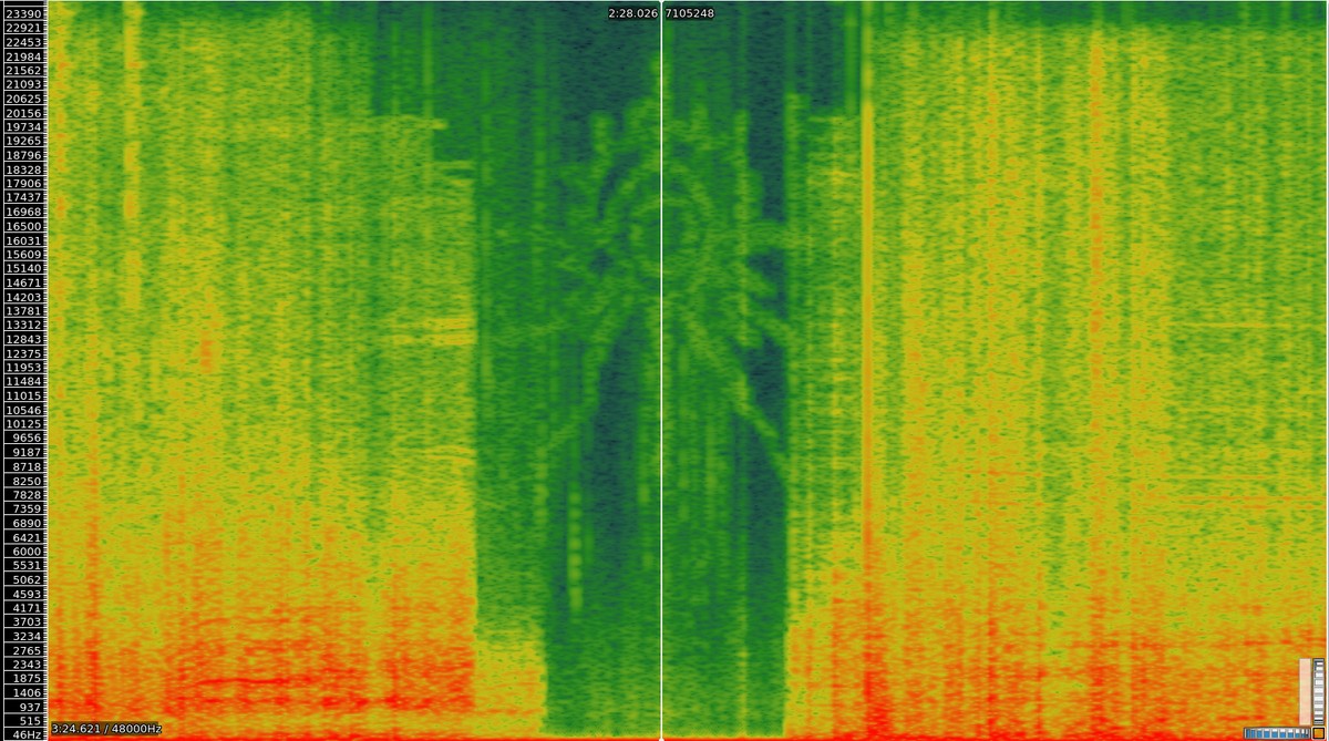 They attached their own screenshot of the spectrogram from the Divinity trailer audio, showing that during a brief moment of silence, a Hellstone pattern was visible. Comparing it to Vincke's image revealed that the director had shared a fragment immediately following this easter egg.