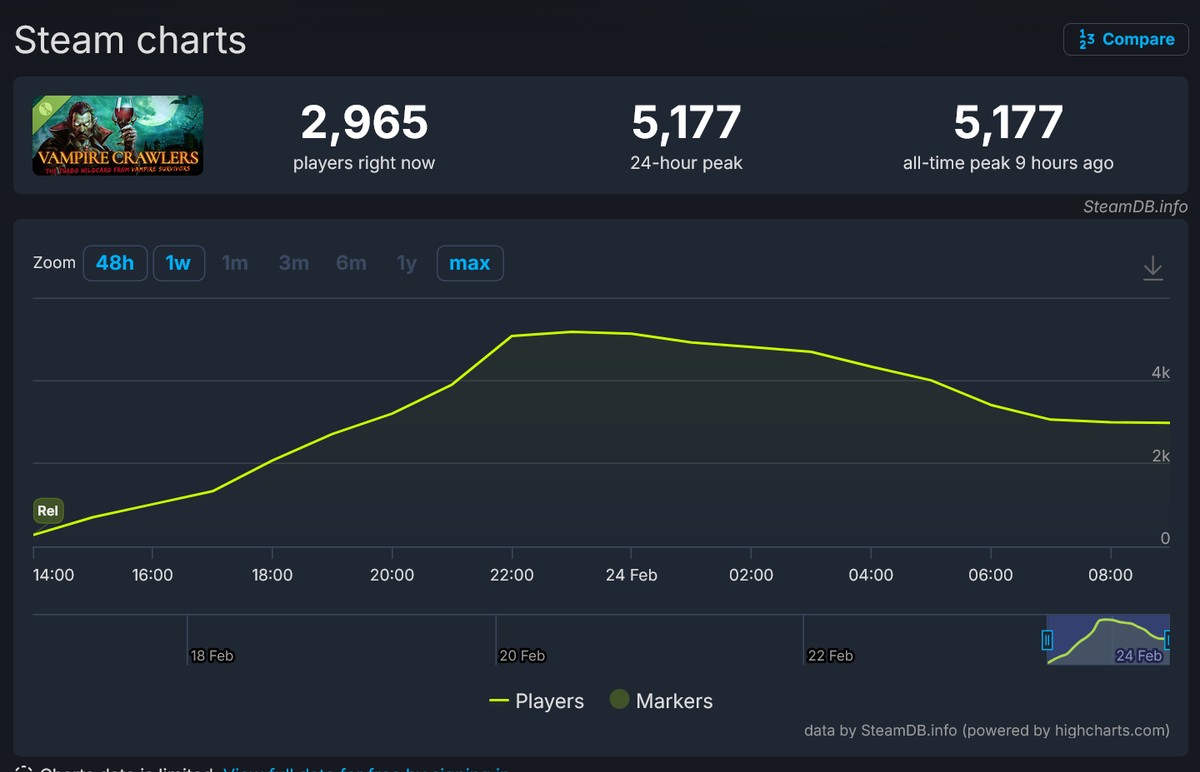 Poncle released a free demo of Vampire Crawlers – the second game set in the Vampire Survivors universe – on PC and Xbox as part of Steam Next Fest 2026. The title shifts genre from bullet-hell roguelike to a turn-based card game with deckbuilding elements. The demo pulled in over 3,000 concurrent players on Steam shortly after launching on February 23.