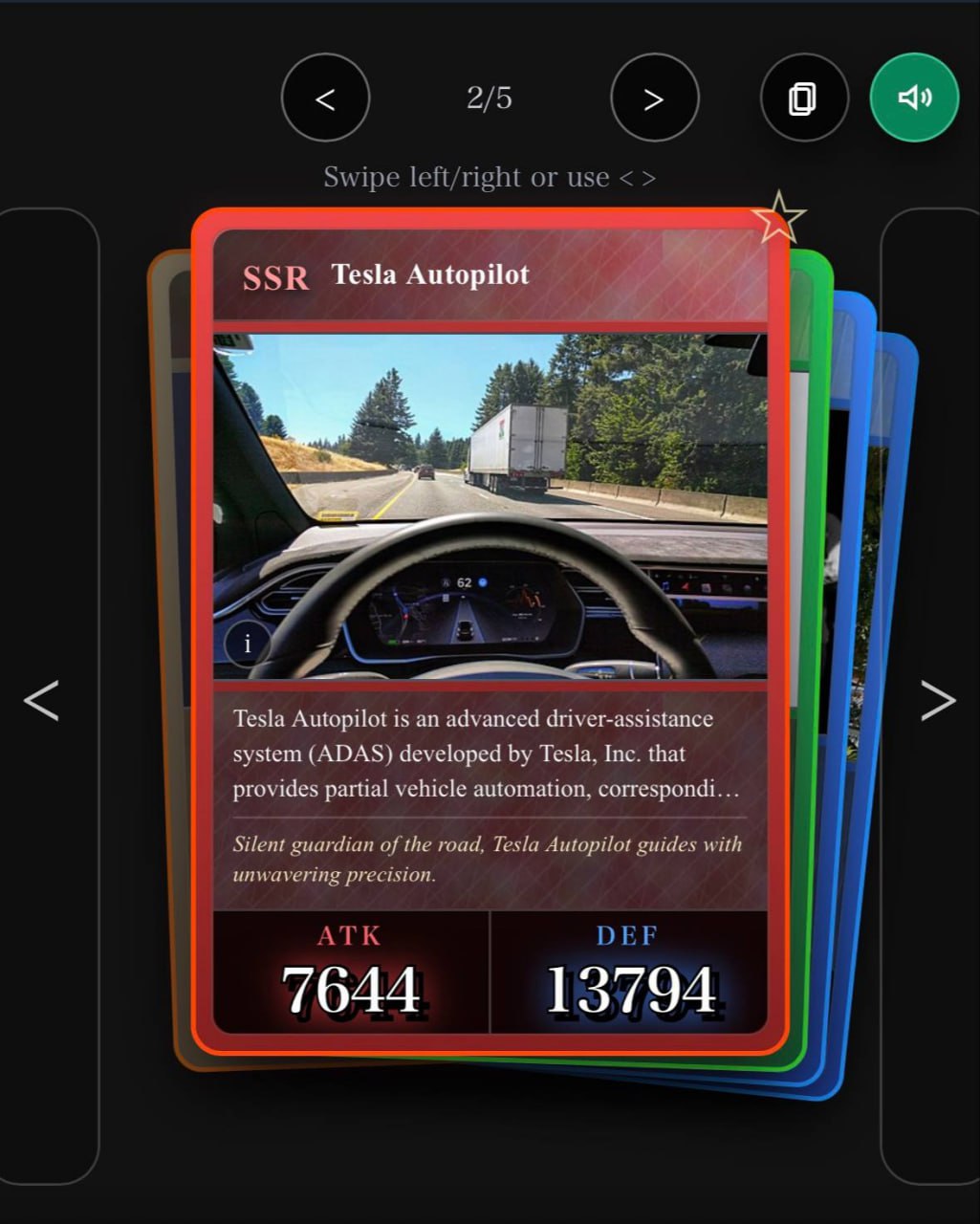 Each card carries two stats: ATK and DEF. Attack is based on the article's popularity, calculated as page views multiplied by a rarity multiplier. Defense reflects the article's depth – content length, again multiplied by rarity.